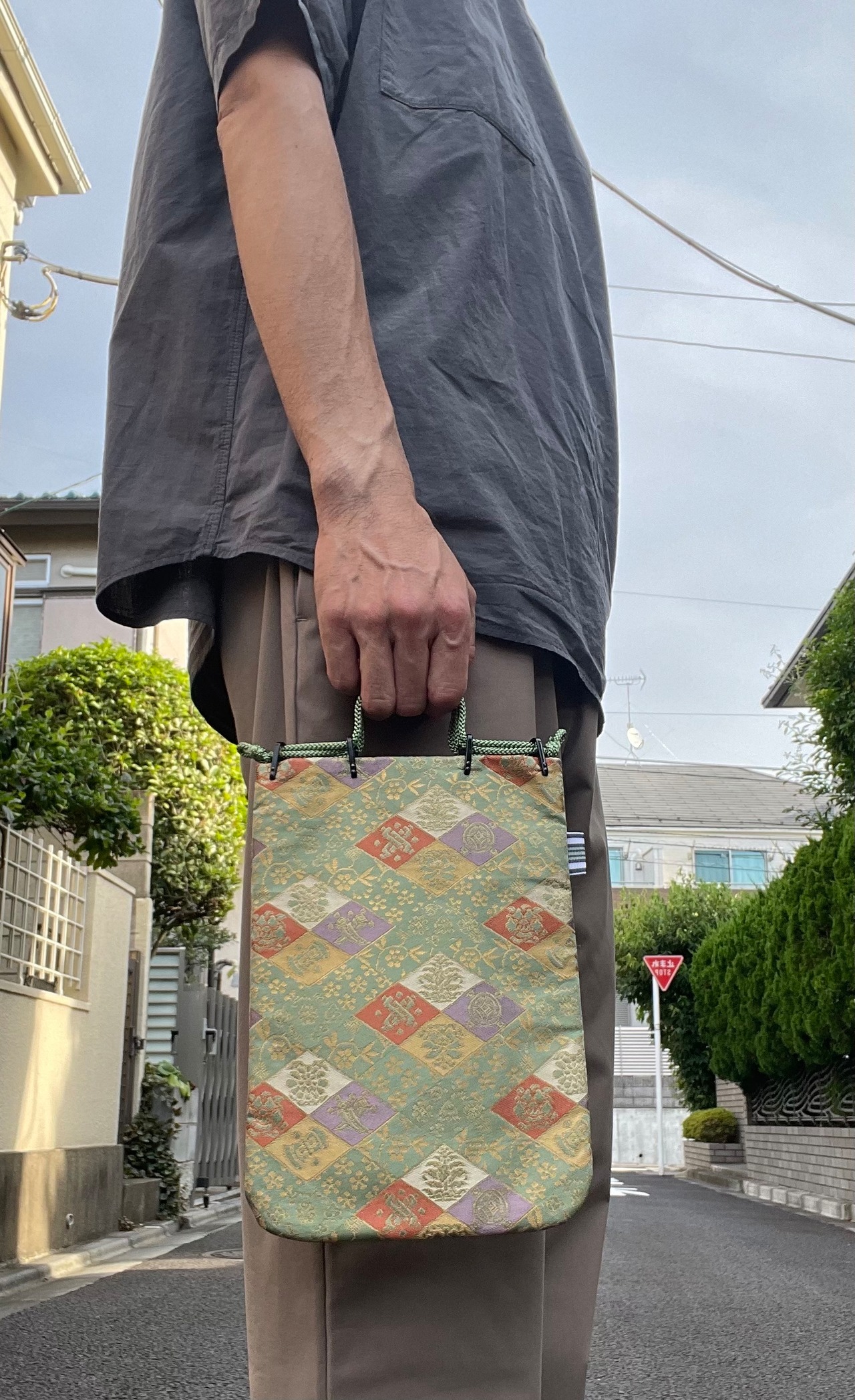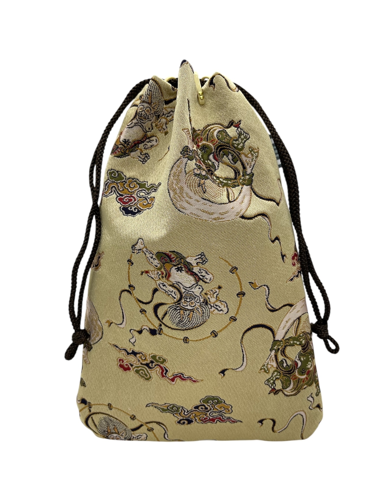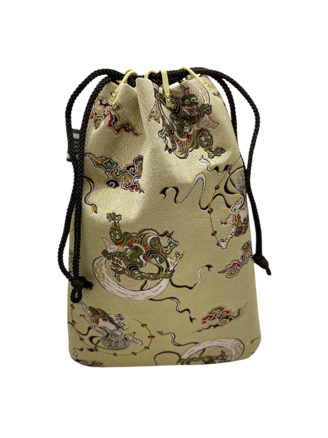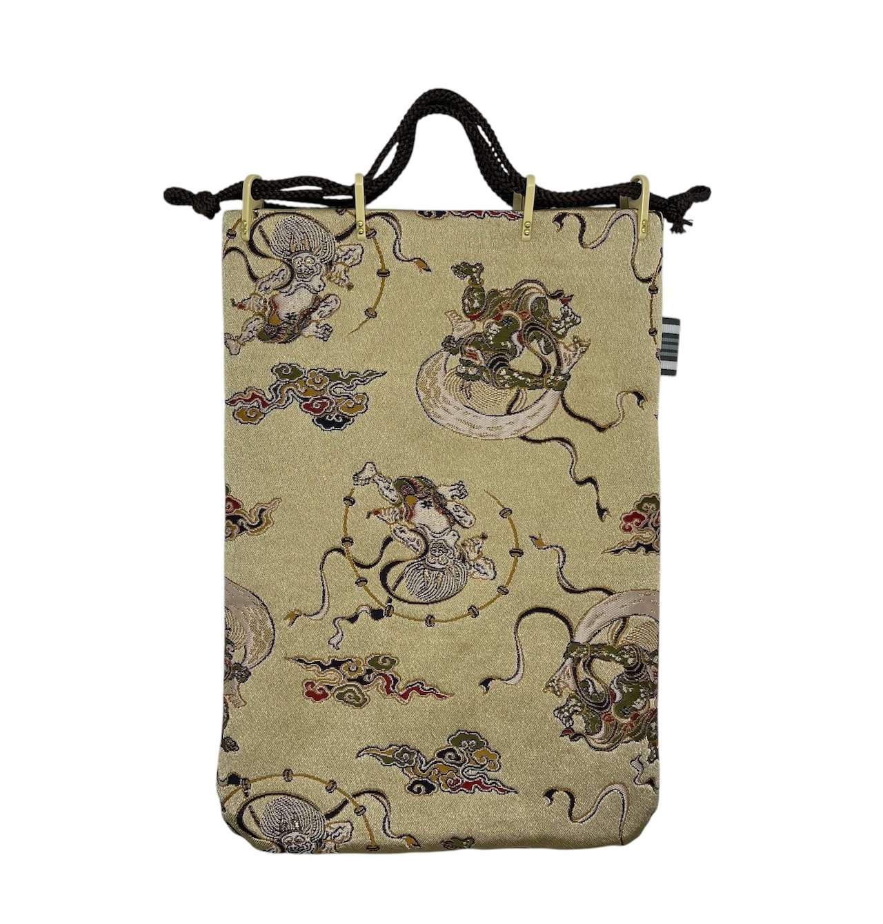 「風神雷神図」柄 西陣織を使った合切手提げミニ(巾着&手提げ)18㎝×27㎝