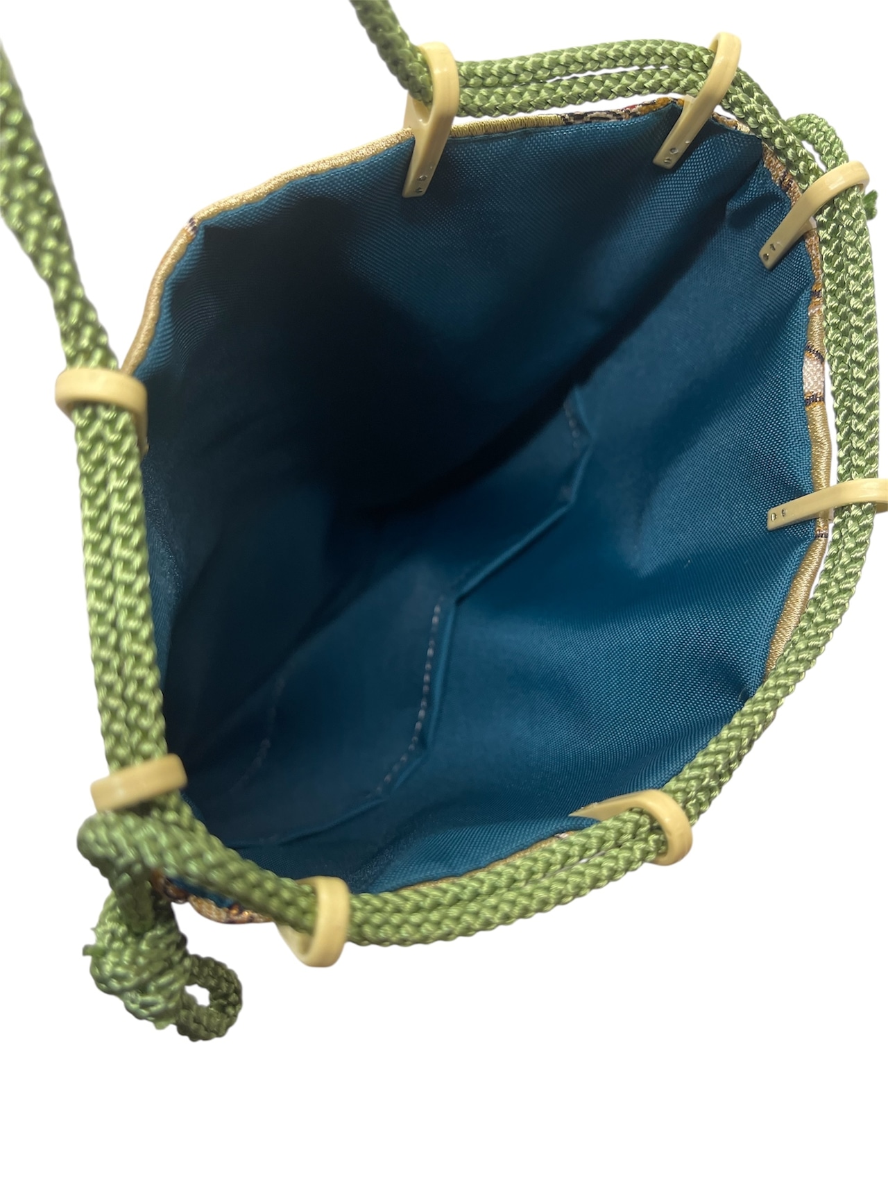 「風神雷神図」柄 西陣織を使った合切手提げミニ(巾着&手提げ)18㎝×27㎝